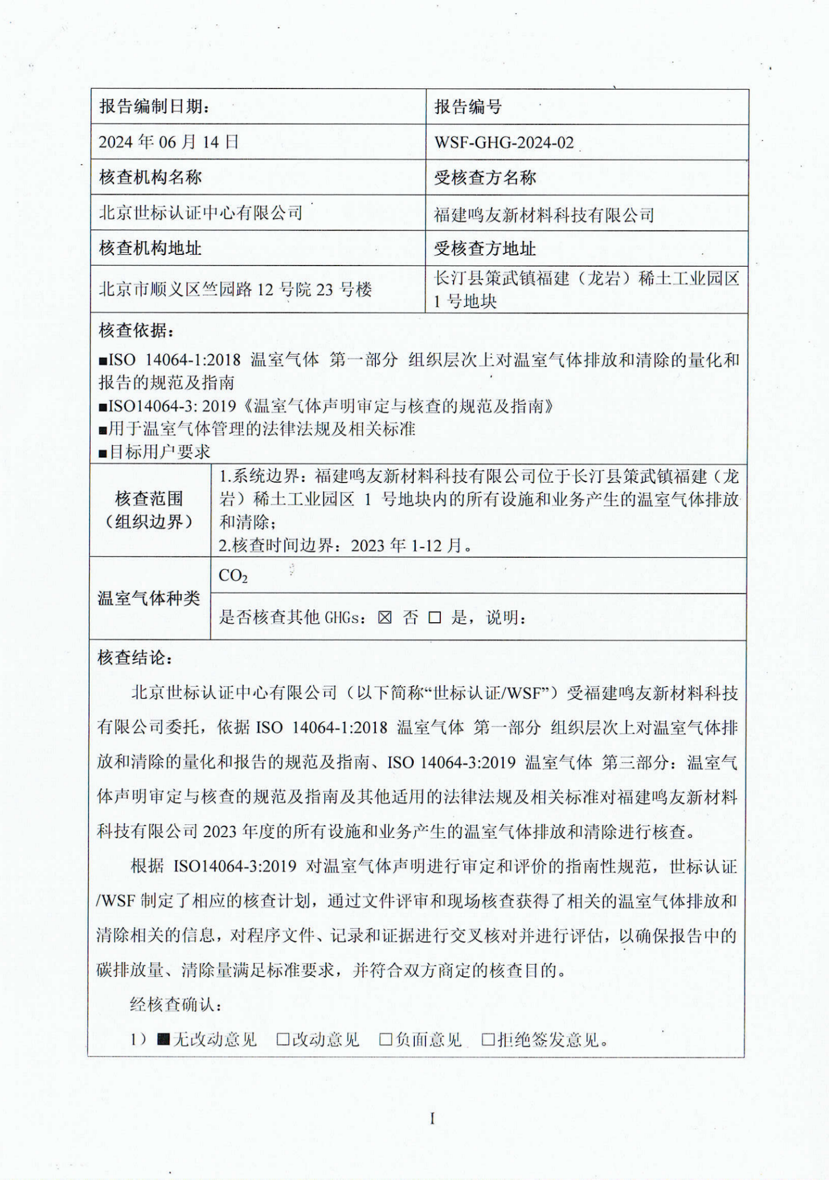 溫室氣體(碳核查)報(bào)告