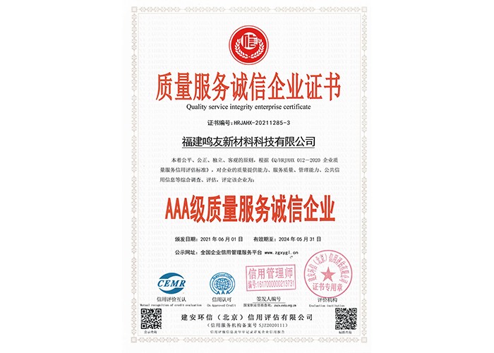 質(zhì)量服務(wù)誠信企業(yè)證書 3A級質(zhì)量服務(wù)誠信企業(yè)