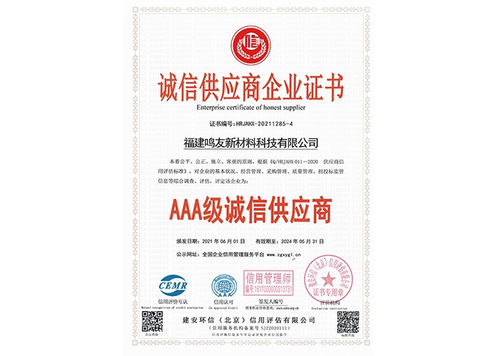 誠信供應(yīng)商企業(yè)證書 3A級誠信供應(yīng)商