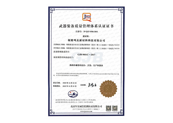 武器裝備質(zhì)量管理體系認(rèn)證證書