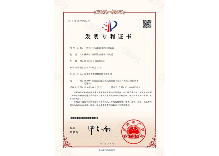 一種熱轉(zhuǎn)印防偽碳帶的回收裝置(發(fā)明專利)